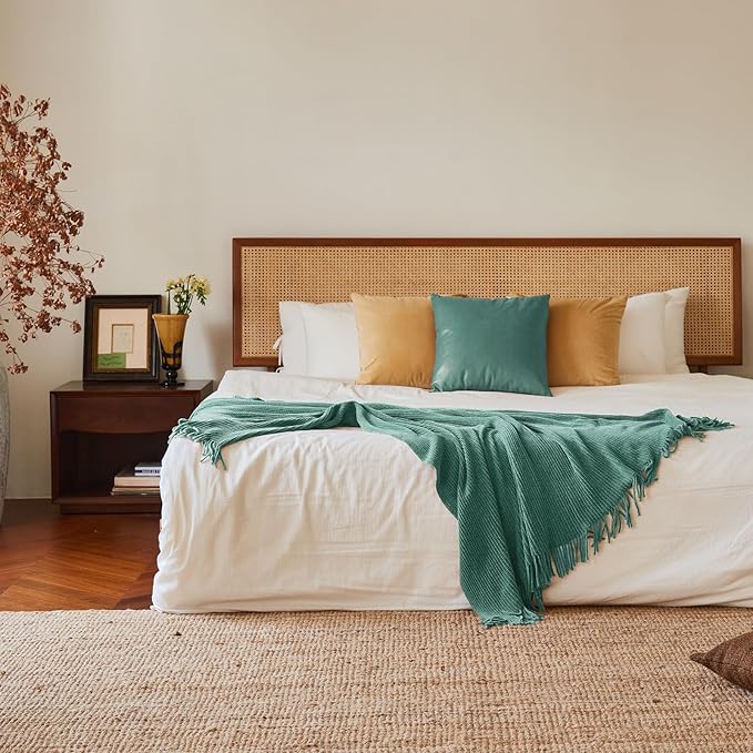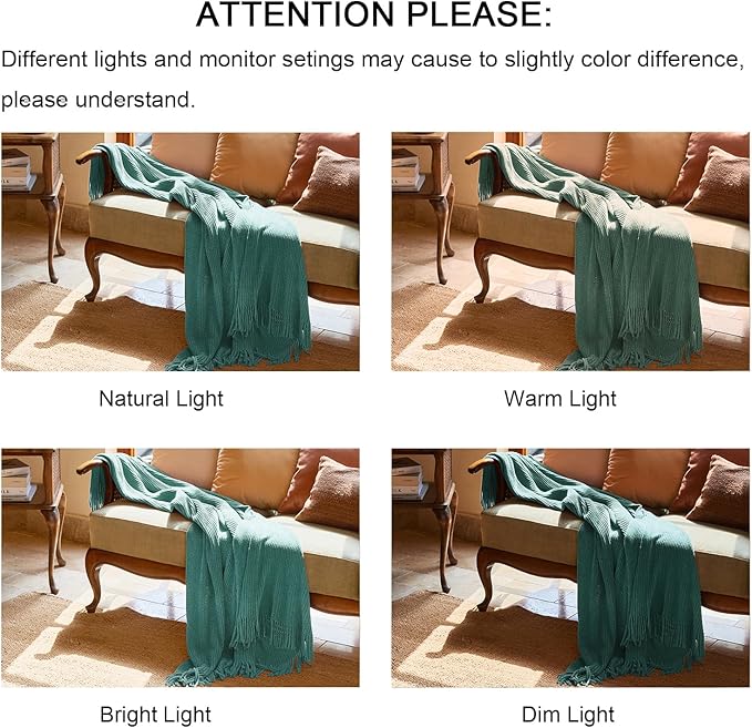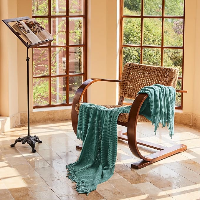 lifein Throw Blanket for Couch, Soft Boho Decor Bed Throw,Cozy Blue Chenille Knitted Small Farmhouse Lightweight Throw for Spring(Aqua,50 * 60")