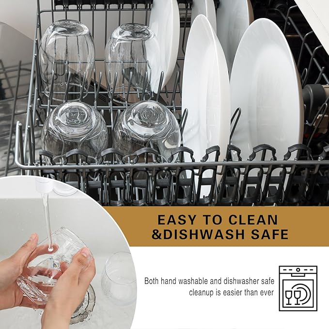 - 【Quality Craftsmanship】: These stemless wine glasses are crafted from high-quality glass, ensuring durability and a smooth feel; the clear glass not only adds to their elegance but also makes them easy to clean after use; DISHWASHER SAFE