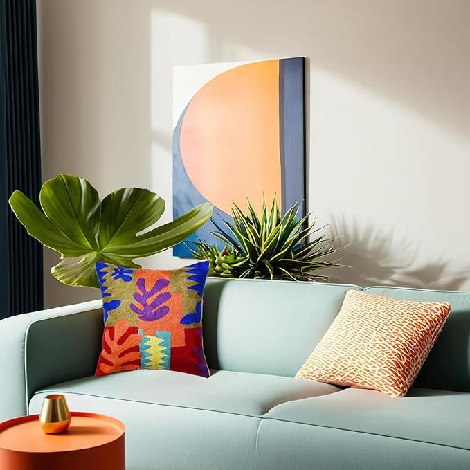 - ❤ Premium Natural Materials: Crafted with care from high-quality, organic natural materials, our soft, modern decorative pillows combine comfort with artistry. The front features intricate hand embroidery using 100% soft wool, while the back is made from durable 100% cotton canvas. This beautifully embroidered accent pillow effortlessly complements a variety of interiors—from mid-century modern to modern farmhouse styles. Inspired by the bold creativity of Henri Matisse, each abstract design is truly hand-embroidered by skilled artisans, making every piece one-of-a-kind.