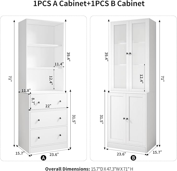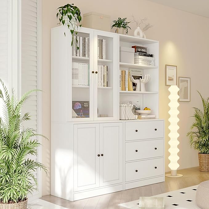 - DIY Your Cabinets: Customize your storage space with 3 drawers, 3 open shelves, 2 hidden shelves, and 3 shelves with glass doors. Perfect for bookcases, kitchen shelves, and display cabinets.