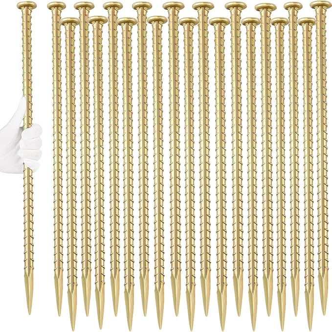 - 【Ribbed & Yellow Galvanized】These rebar stakes are made of malleable steel material. Yellow galvanized to help avoid rust. Ribbed ground anchors are solid, secure firmly and no bend.