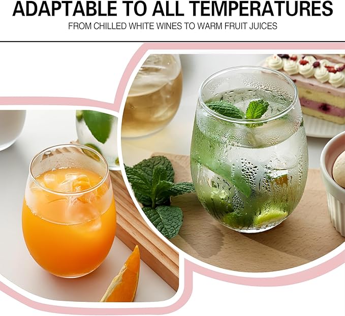 - 【All-Purpose Appeal】: These stemless wine glasses are versatile enough to complement most wines; experience a new level of enjoyment with friends after adding this set to your collection