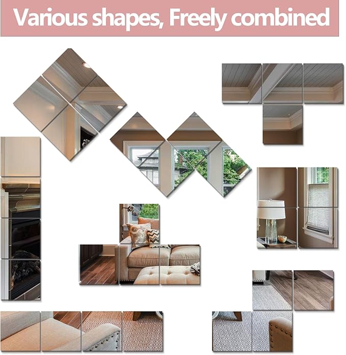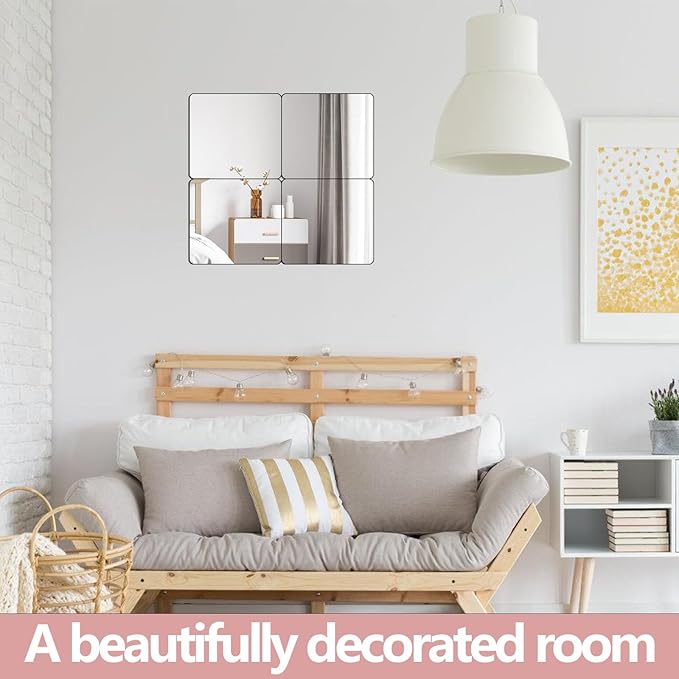 - (High Definition): Comes in 4 packages—each 10-inch x 10-inch piece features clear, distortion-free imaging. They can be freely combined to decorate your own room and can also serve as a full-body mirror.