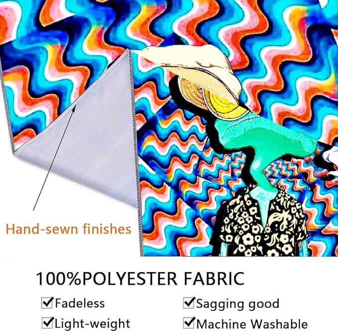 • ๐ŸŒž High-Quality Material: Made from 100% polyester, ADDWel tapestry is durable, lightweight, and easy to clean. It can be washed and ironed at low temperatures without losing its colors. The fabric is also soft to the touch and won't irritate your skin, making it perfect for use as a bedspread, wall hanging, or beach blanket.