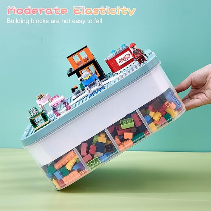 - 【Creative Baseplate Lids Design】The portable toy box storage comes with building plates, is the perfect container for organizing and storing your building blocks. The lid of the plastic toy box can be transformed into a building surface, allowing your child to unleash their imagination and create wonderful structures. The building blocks storage box offers an amazing childhood experience where creativity knows no bounds.