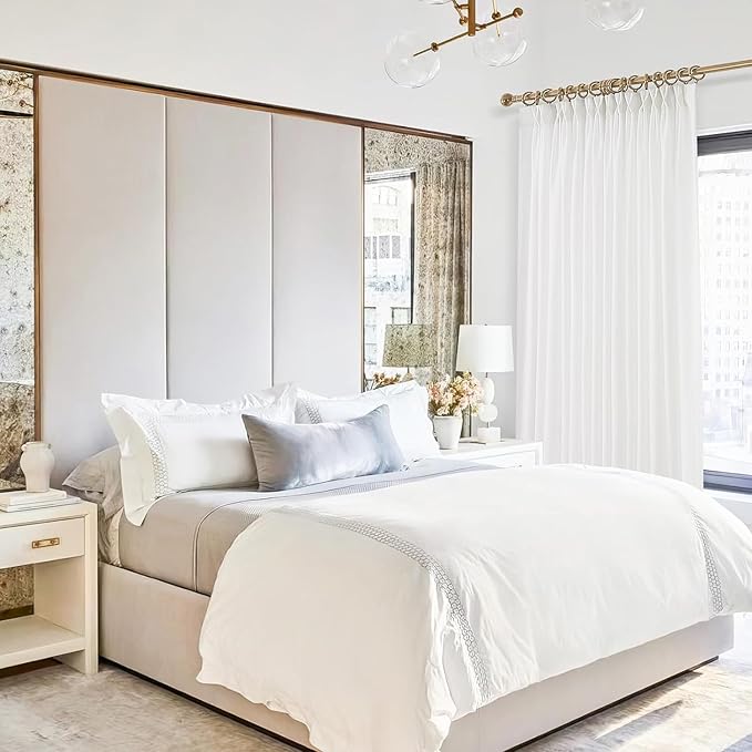 - Ready Made White Pinch Pleated Curtains: It comes in 2 panels per package, each panel measures 52 inches wide and 84 inches long with bonous hooks. Wrinkle free, machine washable in cold water, tumble dry on low