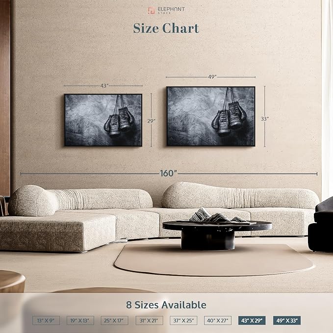 ElephantStock Boxing Gloves Wall Art - Horizontal Framed Canvas - 1-Piece Living Room Wall Decor - Photography Sports Canvas Print - Black and Gray Decor for Wall - 43" X 29"