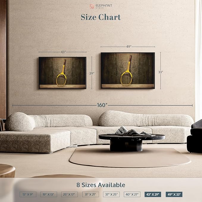 - Durable Canvas Features - Our long-lasting racket sports 1-Piece canvas is made from a non-fading UV and Humidity-resistant 330 GSM Polyester Canvas. This Vintage Tennis Racket canvas can be used as a modern living room wall art.