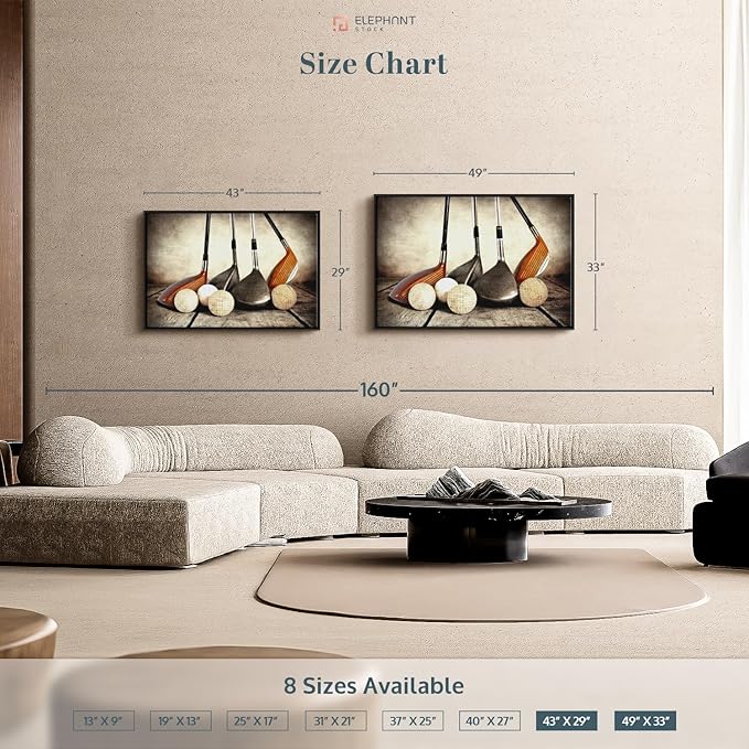- Durable Canvas Features - Our long-lasting other sports 1-Piece canvas is made from a non-fading UV and Humidity-resistant 330 GSM Polyester Canvas. This Golf Sets canvas can be used as a masculine mancave wall art.