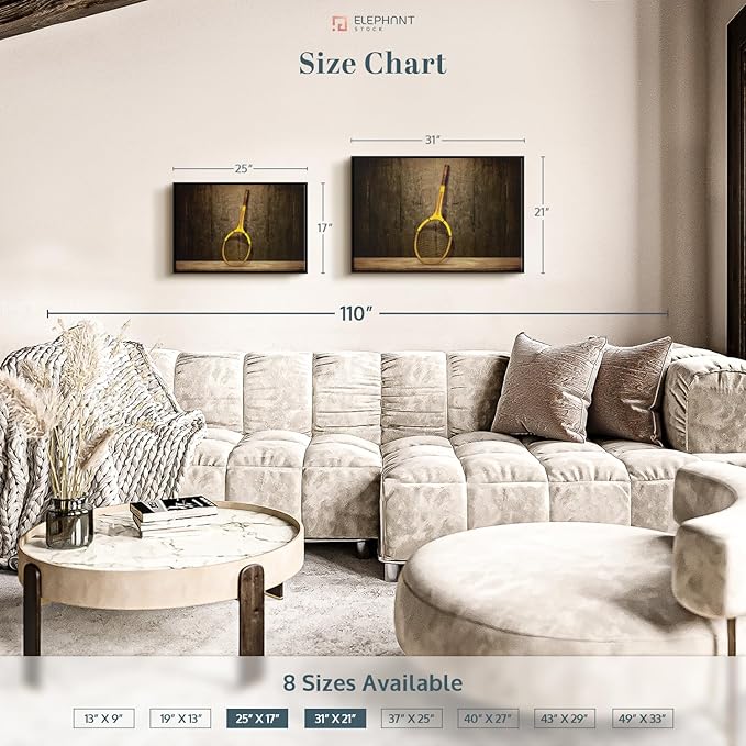- Durable Canvas Features - Our long-lasting racket sports 1-Piece canvas is made from a non-fading UV and Humidity-resistant 330 GSM Polyester Canvas. This Vintage Tennis Racket canvas can be used as a modern living room wall art.