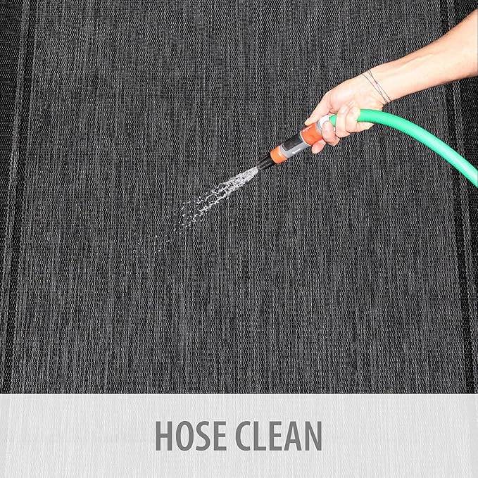 - [ WASHABLE: ] You can vacuum with a vacuum cleaner indoors and you can wash with a hose outdoors. To wash an outdoor rug, spray the surface with a 5-1 mixture of mild dish soap and water and then rise with a hose.