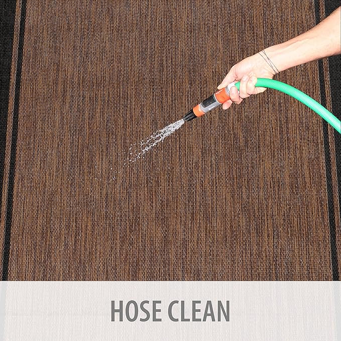 - [ WASHABLE: ] You can vacuum with a vacuum cleaner indoors and you can wash with a hose outdoors. To wash an outdoor rug, spray the surface with a 5-1 mixture of mild dish soap and water and then rise with a hose.