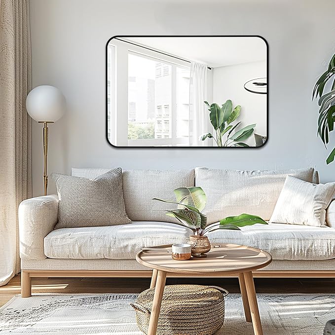 Fabuday Big Black Bathroom Mirror for Over Sink Wall - 26x38 Rounded Rectangle Mirror with Matte Metal Frame, Large Rectangular Vanity Mirrors for Bedroom, Entryway, Horizontally/Vertically