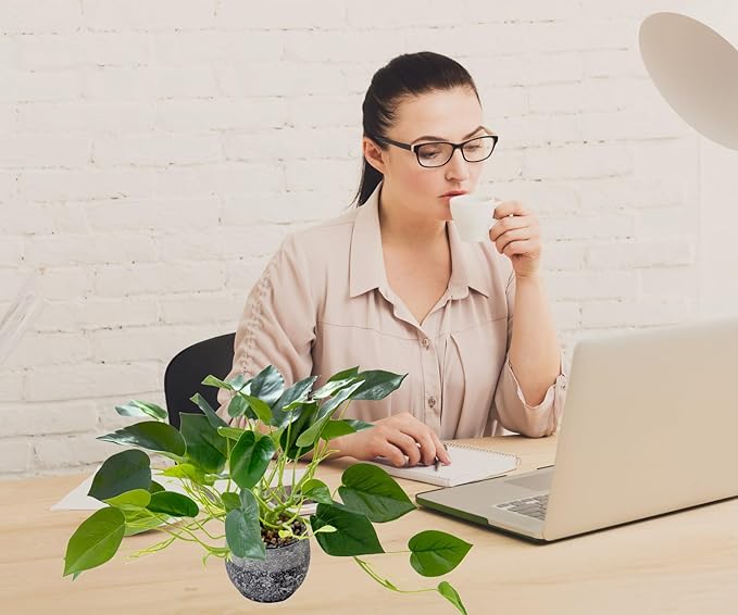- 【UNIQUE DESIGN】Rustic black ceramic pot with lifelike artificial ivy plant that remains looking fresh year after year, without the maintenance of a real plant.