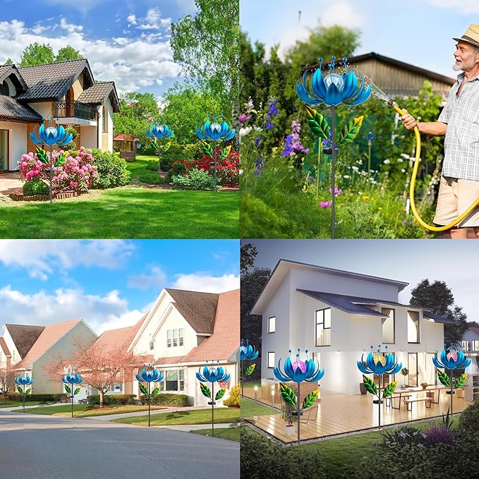 - 【 Easy to Install 】Wind Spinner Outdoor Metal is very easy to install, just twist all the accessories to install. The metal pole, the angle of the petals can be adjusted, you can also adjust the length of the pole and the degree of bloom of the flowers.