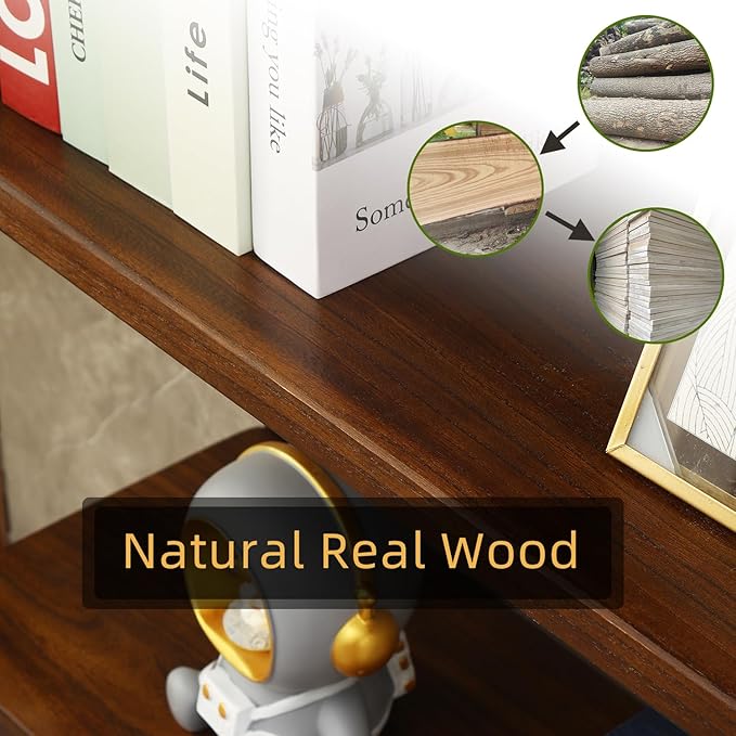 - Exquisite Real Natural Wooden Boards: Crafted from 6 shelf solid wood boards with the Rustic Brown , it can bring you a warm and cozy feeling and brighten up your home. In addition, each solid wood wide shelf of the modern etagere bookcase has strong stability and durability and can hold up to 200 pounds. Rustic Wood Grain Gives It More Character and Makes an Impression: 6-tier bookshelf's natural look and crafting, plus its rustic wood grain, all contribute to its personality and the way it enlivens a room and makes an impression.Leg levelers keep the industrial bookcase horizontal and to prevent it from wobbling. Dimensions: 76.2 inches in Height x 31.5 inches in Width x 11.8 inches
