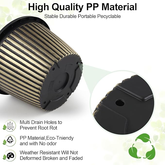 - 【MODERN STYLE PLANTERS】 Indoor planters with saucers provide a unique,nice style in ribbed design which gives an understated elegance that will enhance the beauty of your plant. These 16 inch plant pots are available in red-brown &blue-green & gold finished with a black antique stain. Plastic flower pots would be a beautiful addition to anyone’s deck or sunroom or house!