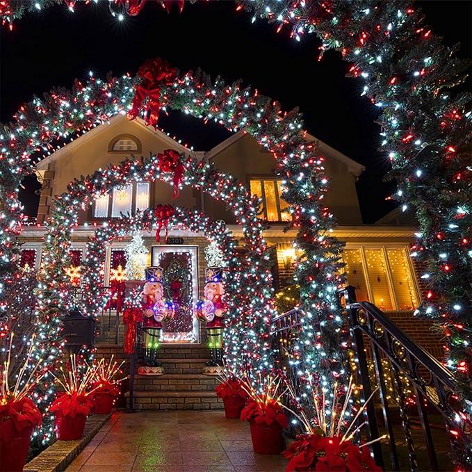 - 66ft Christmas Decorations string lights: With 200 Red & White individual LED bulbs. Each green wire lights has end-to-end connection, you can connect up to 4 sets together to illuminate a wider range. Fit different occasions, moods, feelings, holidays, festivals, anniversaries, etc