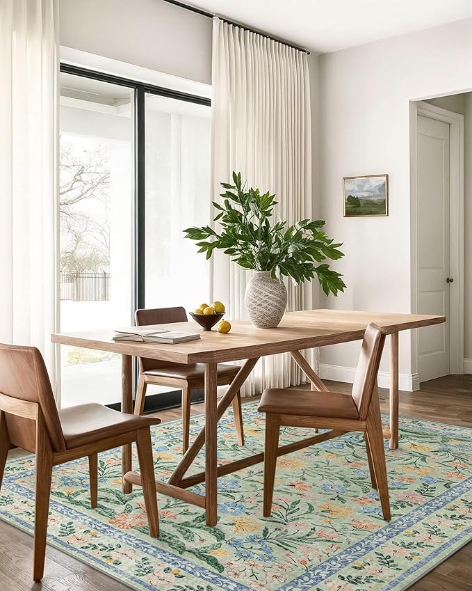 Wonnitar Machine Washable 5x7 Area Rug, Boho Floral Rugs for Living Room Non-Slip, Soft Pink and Green Flower Ultra-Thin Non Shedding Carpet for Bedroom Dining Room Nursery