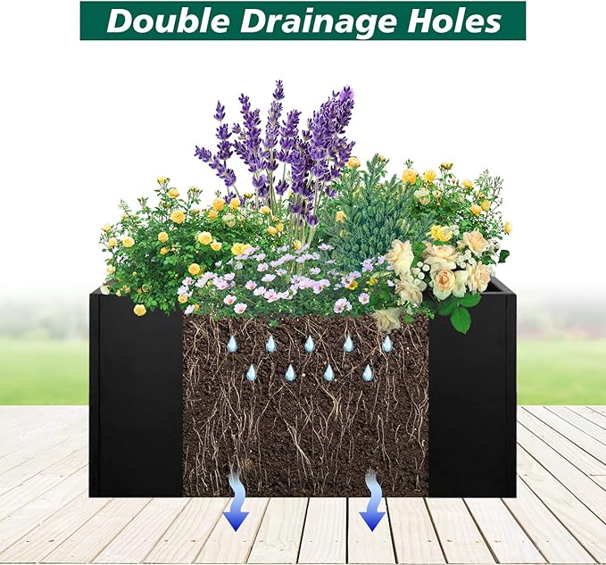 - [ Black Rectangular Planter] Galvanized planter box is made of galvanized steel with black powder coating. Galvanized Steel Planter is wear-resistant, corrosion-resistant and long lifetime.
