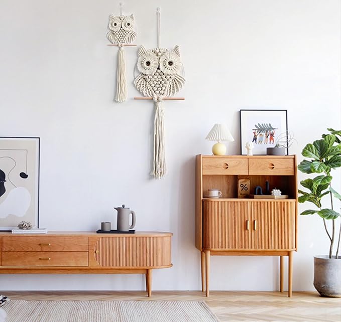 - 【Material & Size】: Our owl macrame wall hangings are made of 100% cotton and hand-made by workers. The size is larger compare with other owls in the market. Beautiful, eco-friendly decorative pendants for indoor use.