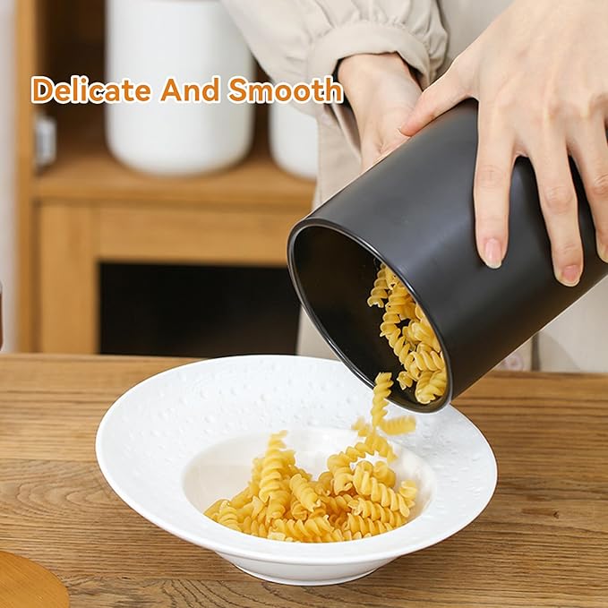 Canister Sets for Kitchen,Ceramic Kitchen Canisters for Countertop with Airtight Wood Lids for Serving Ground Coffee, Tea, Spice, Grains, Sugar, Salt (Black Pack of 3 (8.7/27/44 Oz))