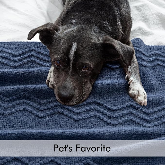 MIULEE Navy Blue Knitted Throw Blanket for Couch Textured Knit Blanket with Tassels Cozy Woven Boho Bed Blanket for Sofa Bed Chair Acrylic Wave Pattern 50"x60"
