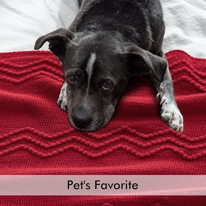 MIULEE Burgundy Red Knitted Throw Blanket for Couch Boho Textured Cozy Woven Blanket with Tassels for Sofa Chair Bed Living Room Acrylic Wave Pattern 60"x80"