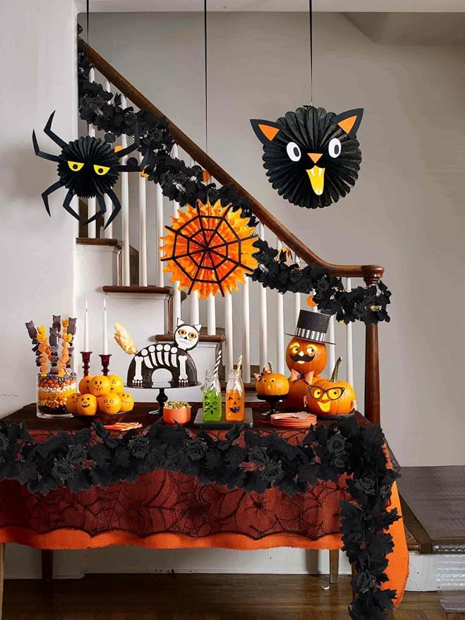 - 【Material of Black Rose Garland】:The maple leaves are made of quality plastic and silk cloth leaves ,Also the leave texture is clear that look like real leaves, the garland stems are made of flexible plastic. The black maple leaves can present a mysterious atmosphere, ideal choice to complete the Halloween decoration.