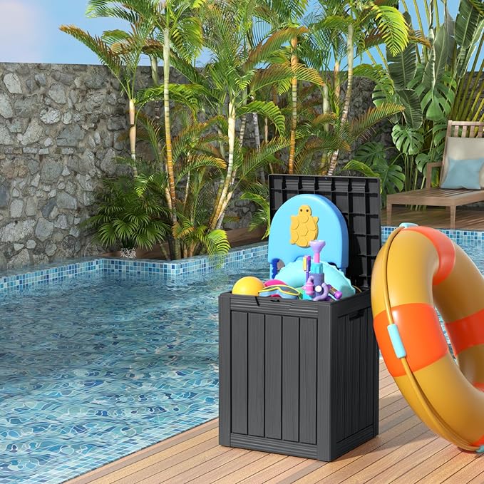 28 Gallon Resin Deck Box, Lockable Patio Outdoor Storage Box for Furniture, Garden Tools and Tools Storage, Waterproof Outside Storage Boxes - Black