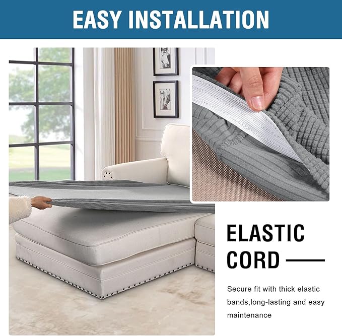 - NON SLIP: Effortless for installation (guide photos on selling page), sewn with thick elastic loops to cover the bottom edges. It is easy to install and take off, making your home more harmony, high recommended for both leather and cloth furniture