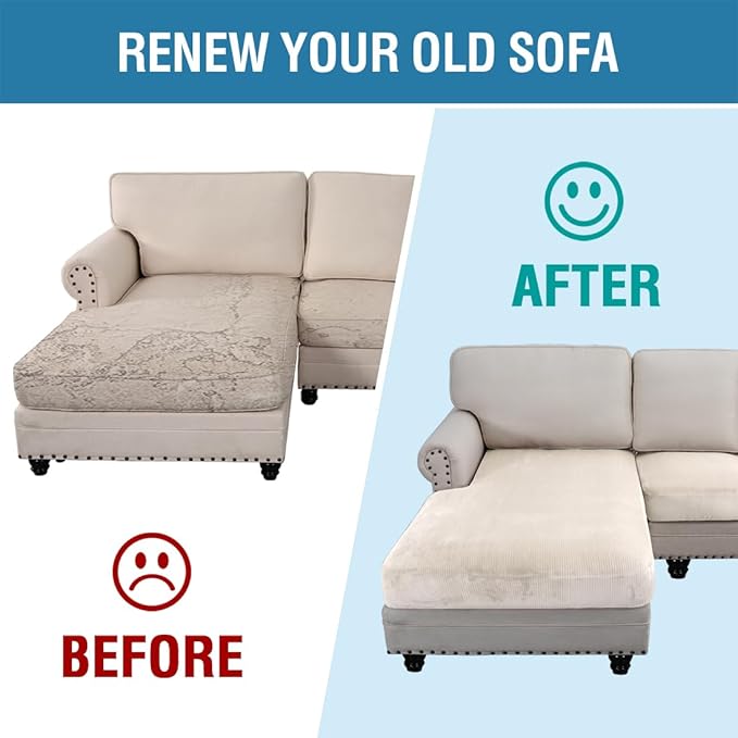 - UPGRADED THICKER: Each individual cushion cover fits up to 19.6-29 inch width, 21.6-30.5 inch depth, 3-8 inch thickness while the chaise cover fits up to 32-38 inch width, 54-62 inch depth, 3-8 inch thickness. Feature one-size-fits-most, kindly measure before ordering.