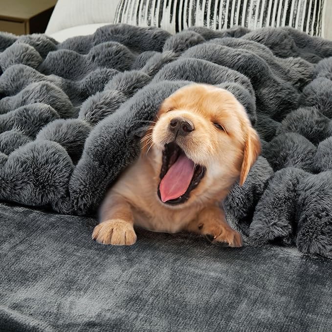 DREAMNINE Large Soft Thick Fuzzy Bubble Faux Rabbit Fur Bed Blanket Queen Size 80" x 90",Reversible Gray Plush Big Warm Shaggy Fluffy Blankets for Sofa, Solid Luxury Cozy Cute Bumpy Furry Blanket,Grey