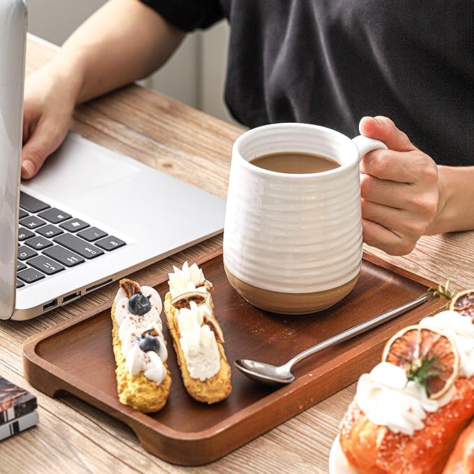 - GENEROUS 15 OUNCE CAPACITY: These ceramic coffee cups hold 15 ounces, making them perfect for coffee, tea, hot chocolate, soups, and desserts; their versatile size meets all your drinking and serving needs