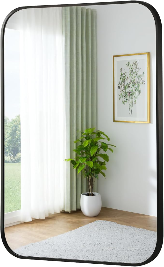 FARMER 20x30 Inch Black Bathroom Mirror, Rectangle Vanity Mirror, Brushed Mirrors for Wall, Metal Frame Hanging Mirror with Round Corner for Bedrooms, Entryways, Living Rooms, Horizontal/Vertical