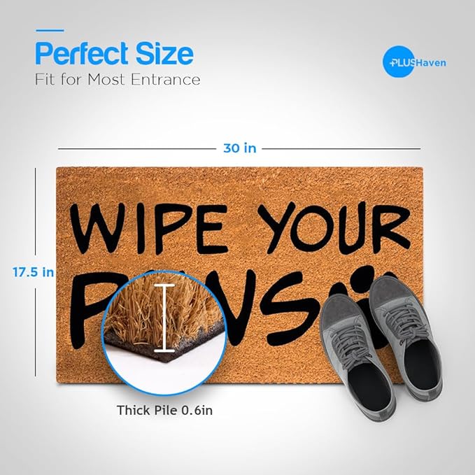 PLUS Haven Coco Coir Door Mat with Heavy Duty Backing, Natural Wipe Your Paws Doormat, 17.5”x30” for Entrance, Front Porch, Easy to Clean Entry Mat, Outdoor and Indoor Uses, Home Decor