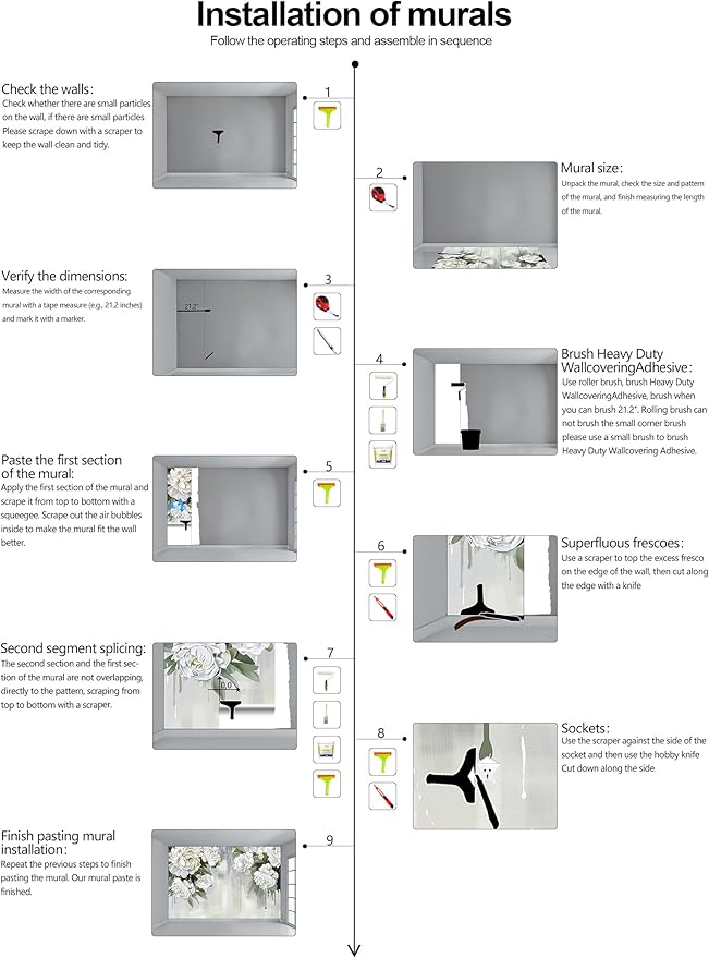 - Construction Installation: Each part of the mural is marked with a serial number underneath, no overlap, direct docking, in order. (Please refer to installation instructions)