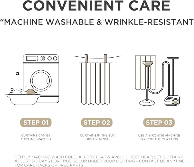 - Maintenance Care&Note: Machine wash cold and low-temperature drying. Natural light at different times may reflect window drapes with slight color differences. We can ensure that the color of the blackout curtains 96 inches long you receive meets your expectations