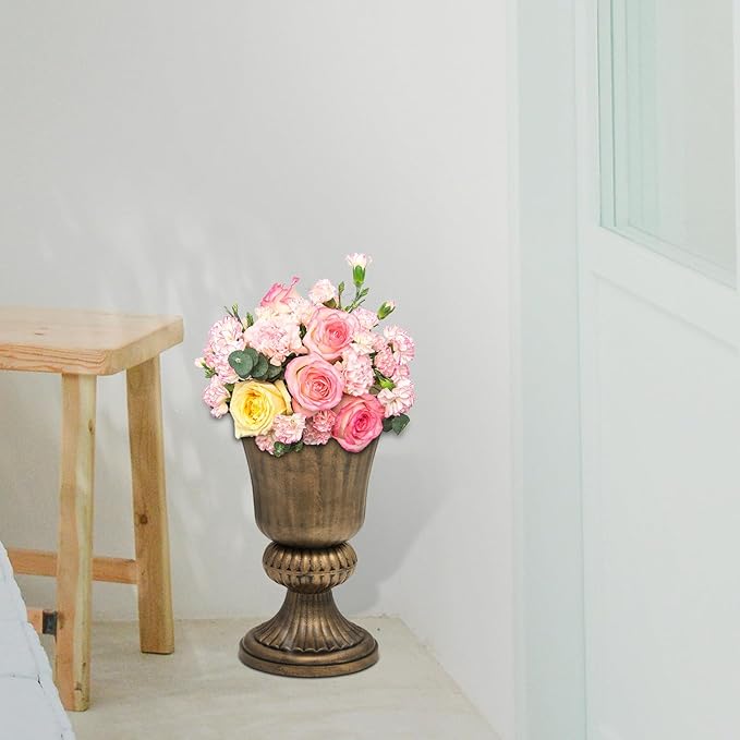 Athena Collection 20''H Garden Plastic Urn Vintage Tall Planter Urn Patio Large Flower Pot Porch Planter Large Planter for Indoor Outdoor Plant, Bronze