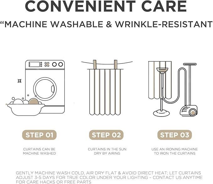 - Maintenance Care&Note: Machine wash cold and low-temperature drying. Natural light at different times may reflect window drapes with slight color differences. We can ensure that the color of the curtain you receive meets your expectations