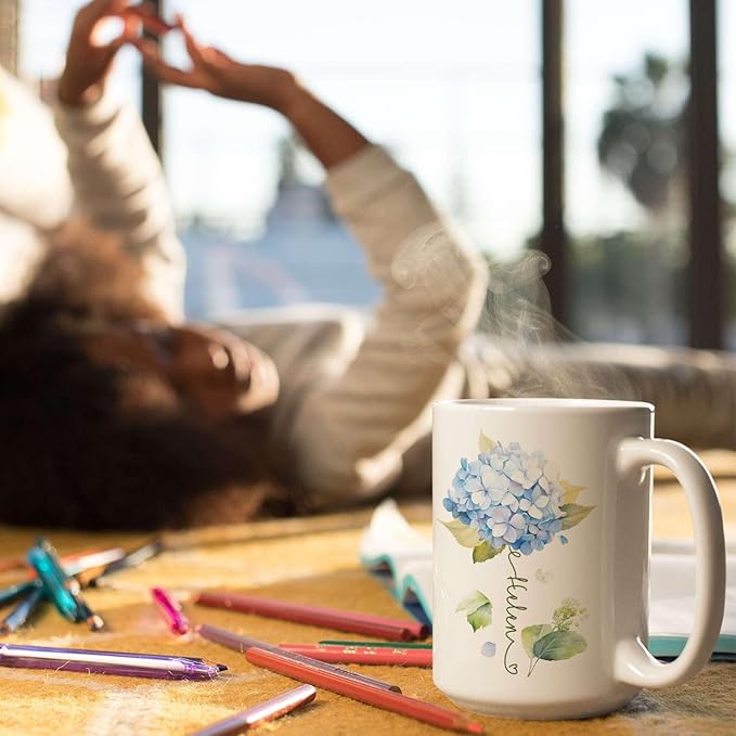 - 💝 UNIQUE DESIGN MUG: Enhance your mornings with this "Custom Hydrangea Blossom Design Mug" featuring a lovely blue hydrangea and a name. Click "Customize Now" to add a name and create a unique gift for floral enthusiasts. Suitable for daily use or as a special present for birthdays, holidays, and other celebrations.