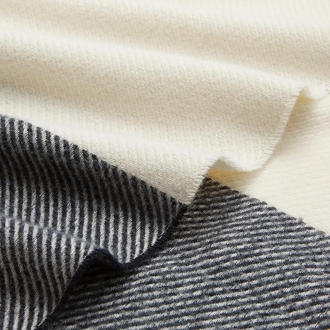 - 50 x 60-inch cozy throw blanket with textured cross-check pattern and fringed edges