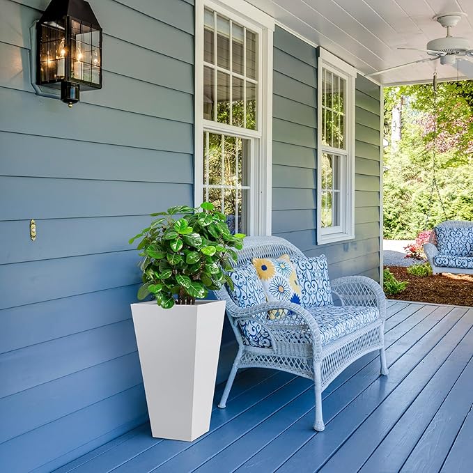 - Tall White Planters for Front Porch: Size: 15.25”L x 10.25”W x 30”H. Easy to Install. Package: 4 sides and a bottom surface with a drainage hole, a detachable shelf with a drainage hole, a installation Manual, a Allen wrench, screws, gloves x 1