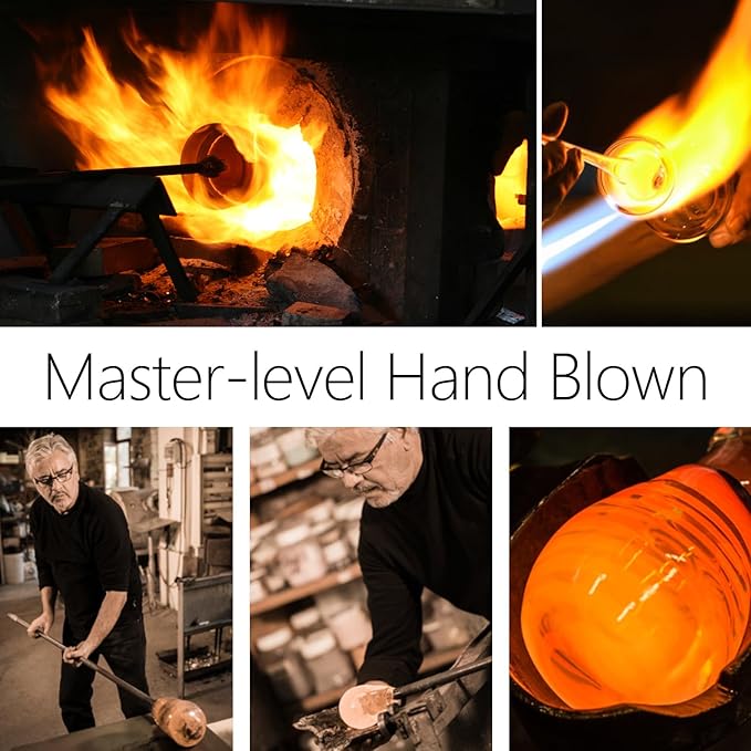 - Handcrafted --- Each wine glass is hand-blown by an experienced master craftsman, by whom the edge is delicately polished and cut for a thin and smooth appearance to provide a better sense of touch for your lips and enhance the quality and flavor of the wine.