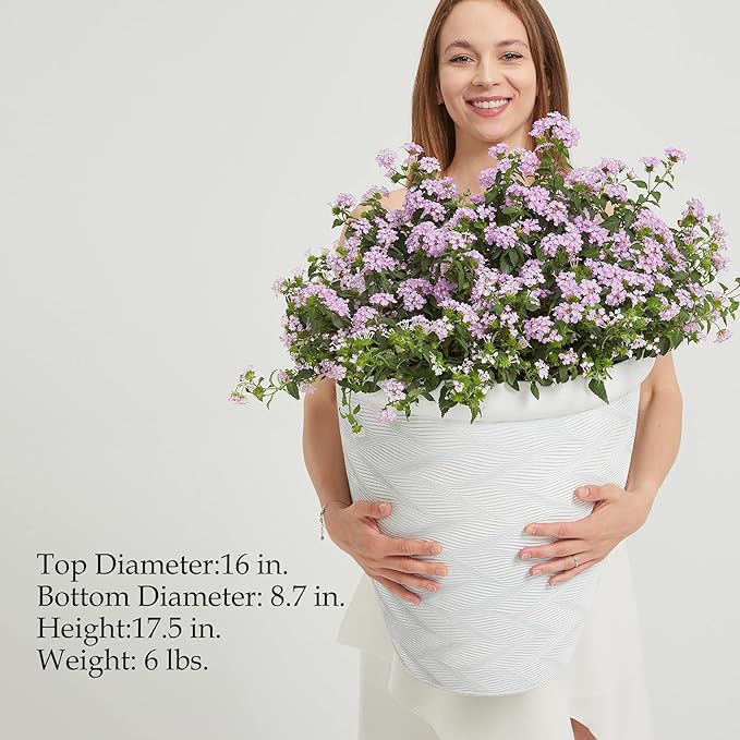 - Versatile Size: Each planter measures 16 inches in diameter and 17.5 inches in height, accommodating a variety of plants.
