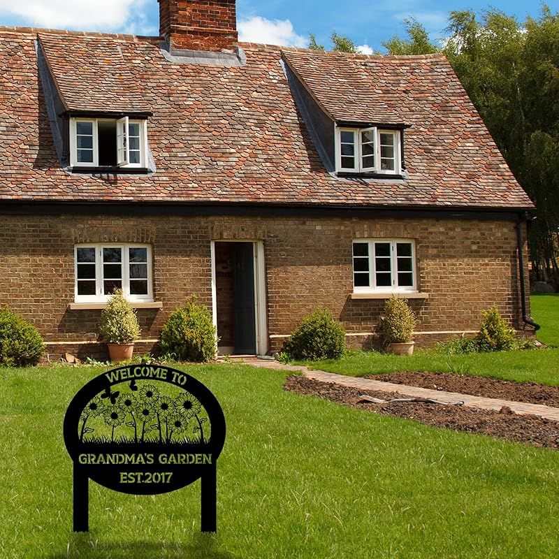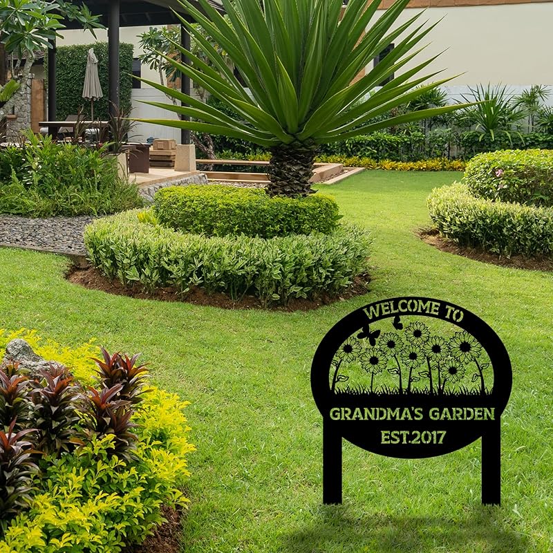 Personalized Metal Garden Sign with Stake, Custom Flowers Garden Decor for Outdoor, Custom Family Name Sign, Patio Decorations, Lawn Art, Farmhouse Decorative, Housewarming Gift