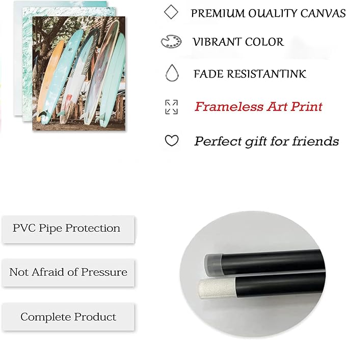 • 【Unframed Canvas Wall Art】 For our 6 piece beach wall art sizes, there are 8*10in,12*16in. It is a UNFRAMED poster, only printed on the canvas WITHOUT any stretching on wood frame