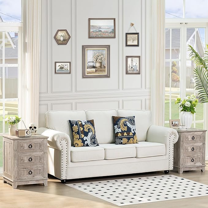 - Sturdy and Reliable Structure:The side table with drawers is constructed from durable wood panels, ensuring a heavy-duty and long-lasting design. The 3 drawers feature high-quality metal drawer slides, enabling smooth and quiet operation, with a soft-close mechanism for a perfect closure every time.