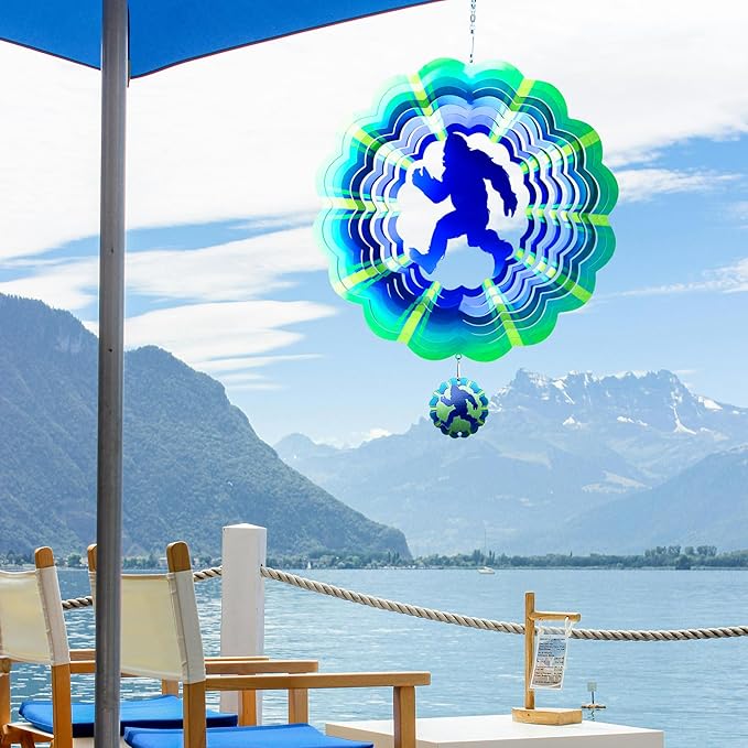 Bigfoot Gifts Sasquatch Yard Decor, for Dad Husband,12 inch Bigfoot 3D Hanging Wind Spinners Outdoor