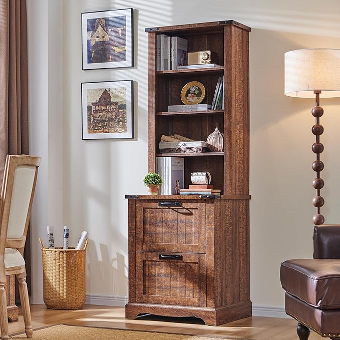 - Two Large File Drawers: The office bookshelf has two large and deep file drawers (overall size is 16.6"W*17"D*10.2H) and are equipped with adjustable file hangers to accommodate both legal-or letter-sized documents. Drawers are set on full-extension, metal ball-bearing glides for smooth movement and easy removal.